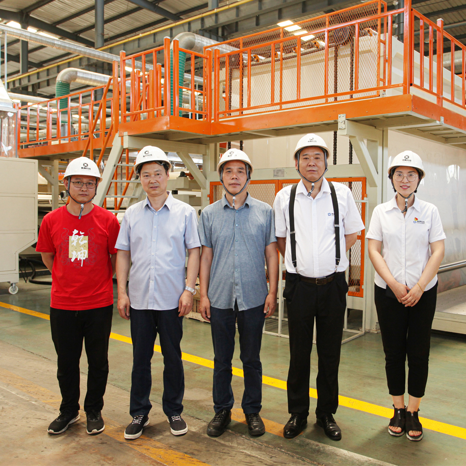 在新陸車(chē)間現場(chǎng)趙總向客人介紹了新陸公司產(chǎn)品類(lèi)別、市場(chǎng)部署、主要業(yè)績(jì)、目前訂單的取得、生產(chǎn)狀況、目前新技術(shù)新產(chǎn)品在研情況,生產(chǎn)部王浩經(jīng)理向客人詳細介紹了防水卷材和土工布生產(chǎn)流水線(xiàn)及產(chǎn)品產(chǎn)量、質(zhì)量的有效控制。